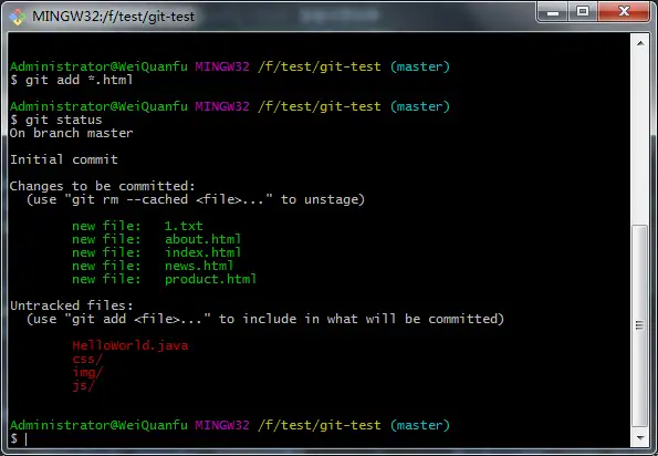 git add *.html 添加所有 .html 文件到仓库