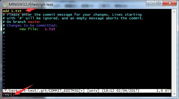 git commit 提交文件,打开 vim 窗口输入描述信息