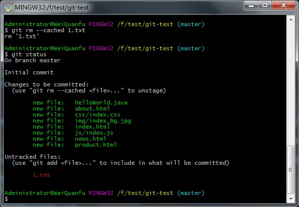 git rm cached 1.txt 从已添加文件中删除 1.txt 文件