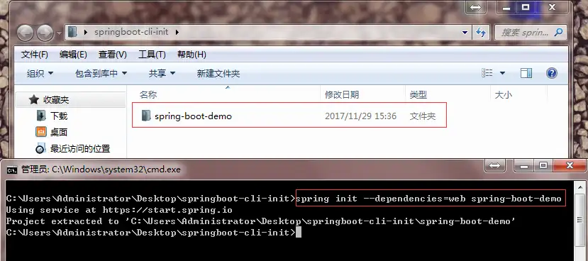 spring init --dependencies=web spring-boot-demo,(其中 spring-boot-demo 是项目名,也是模块名,artifactId),会访问 https://start.spring.io/ ,过一会就会将项目需要的文件下载到 /spring-boot-demo 目录下,将其导入IDEA下载相关maven依赖后就可以启动。如果需要多个依赖可以在参数后面,如spring init --dependencies=web,jpa spring-boot-demo。