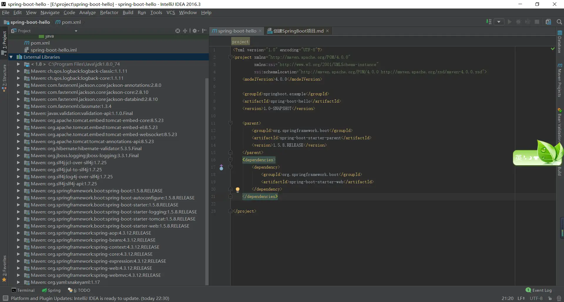 - 将 springboot 最基础的依赖包加入到 maven 项目的 pom.xml 中