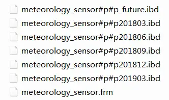 进入 MySQL 的数据存储目录下,查看数据库的文件,发现出现了如下的分区文件,说明初始分区正确: