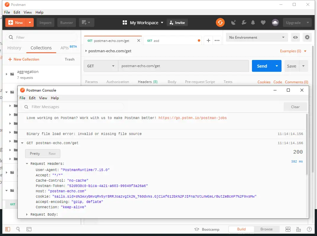Postman 控制台中会输出请求的详细信息,帮助用户排除请求的错误信息,点击 Postman 界面下发的 Postman Console 按钮(快捷键 Ctrl + Alt + C) 即可打开控制台界面。