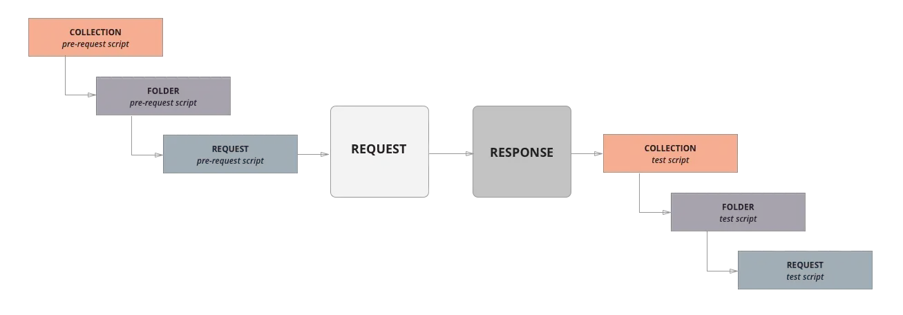 可以在请求(request)、文件夹(folder)、接口集(collection) 中添加脚本,请求前脚本执行顺序是: