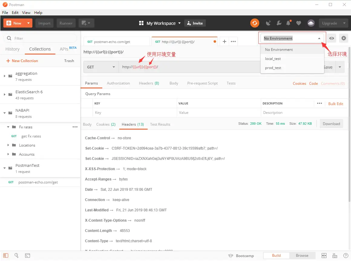 添加环境后,在请求中就可以使用环境中添加的变量,在测试时根据需要随时切换环境。