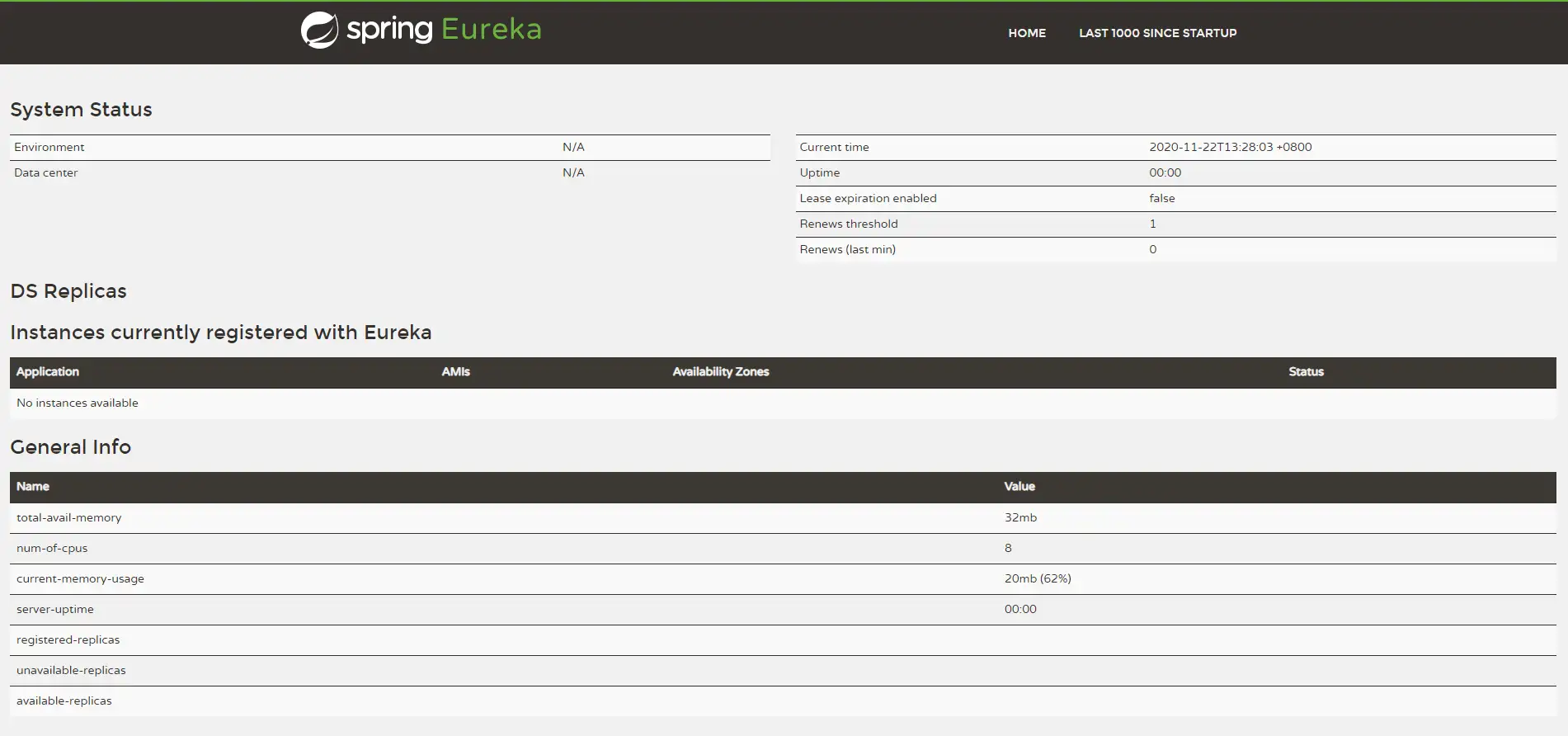 运行项目,访问 http://localhost:8761/ ,查看 Eureka 的信息面板。