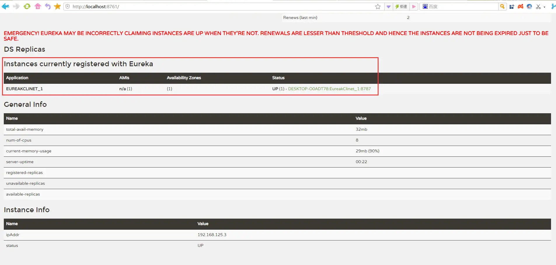 注意在eureka注册信息页面上红色显示的