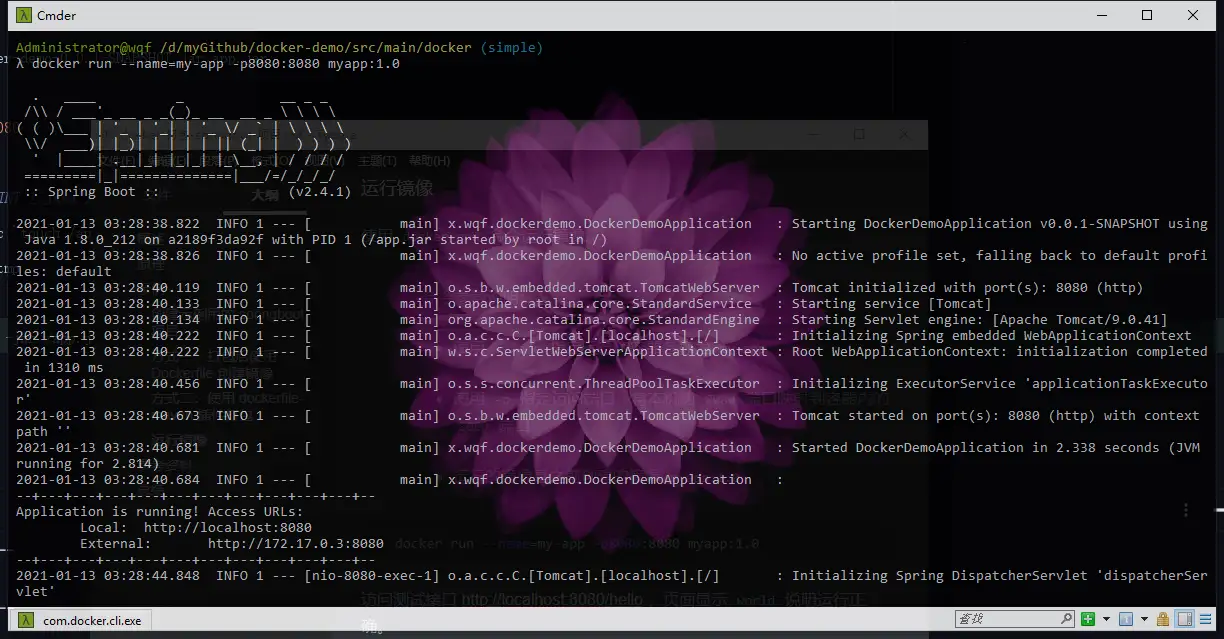 修改项目启动类,添加一个接口用来测试。DockerDemoApplication.java :