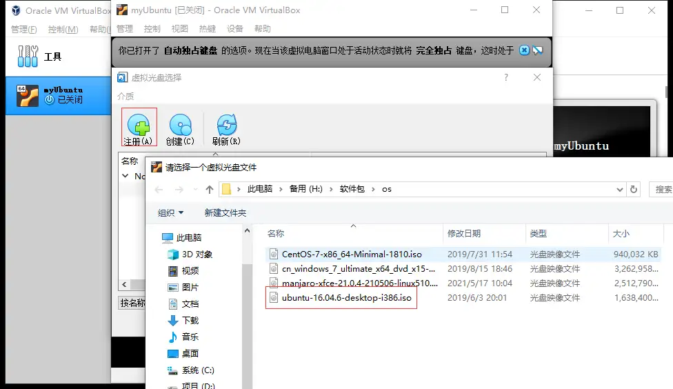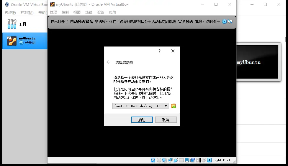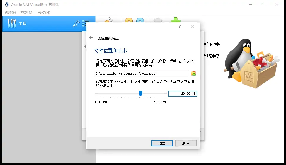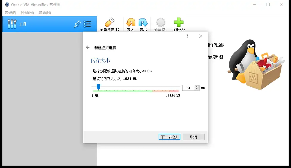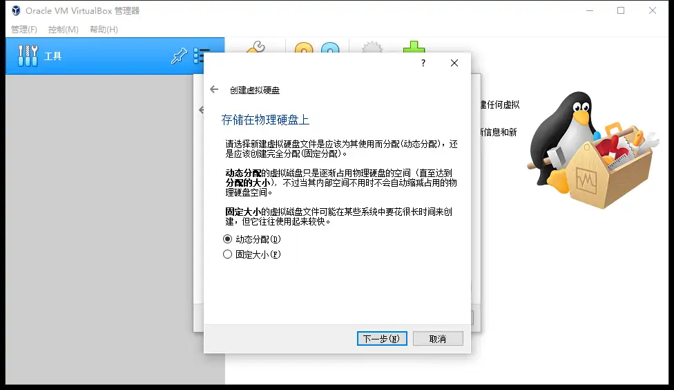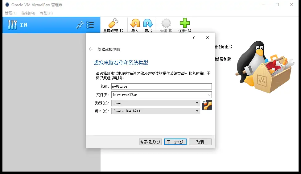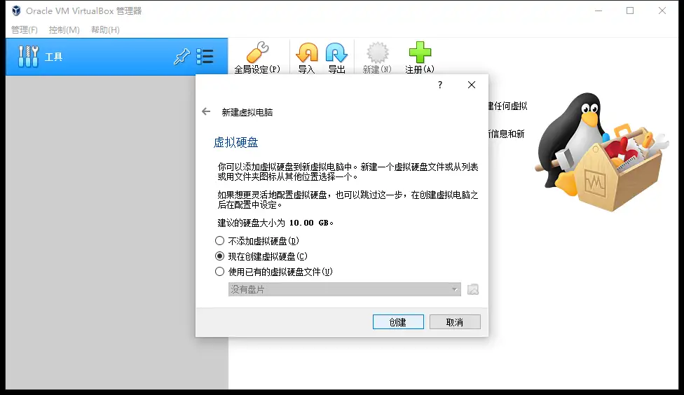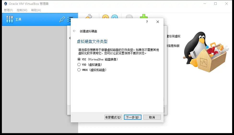 打开安装好的 Oracle VM VirtualBox,根据引导程序设置虚拟机参数,创建一个虚拟机项目,然后启动项目,选择下载好的系统镜像文件,开始安装系统。