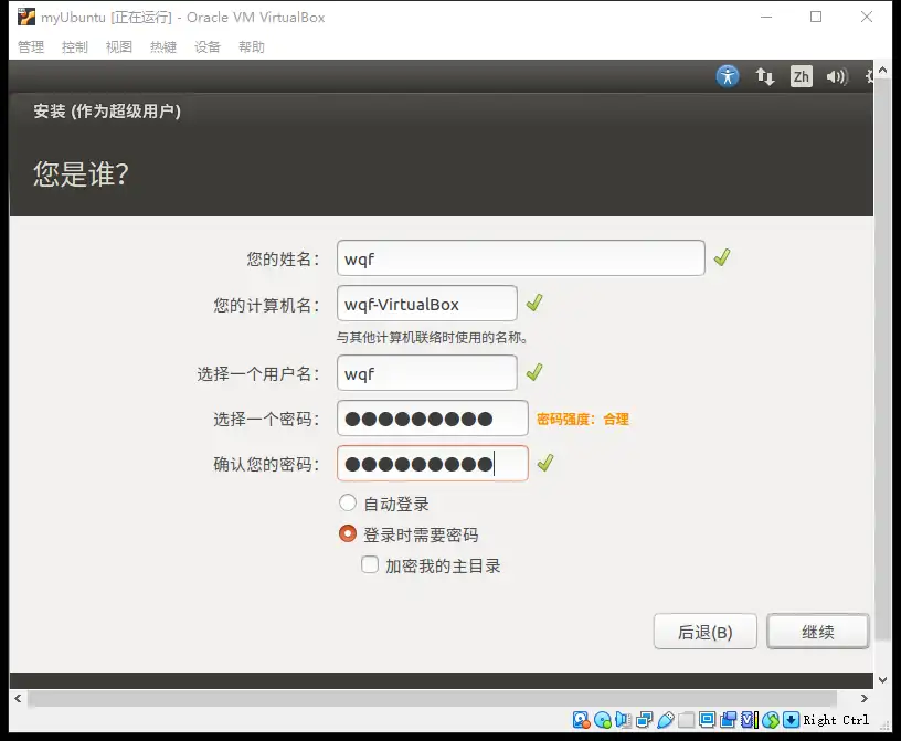 安装设置过程中的分区和用户信息非常关键,分区可根据系统用途进行细微调整,初学者可直接使用默认配置,用户信息在登陆时要用到,需要记住。