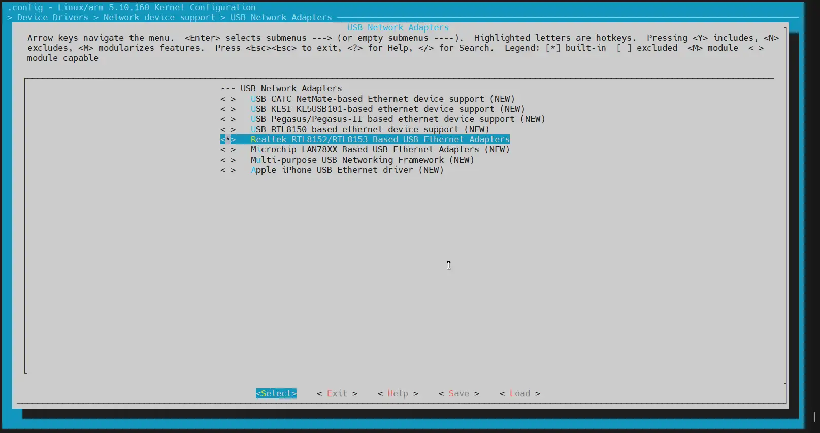 在 menuconfig 界面中,按以下路径找到 RTL8152 驱动: