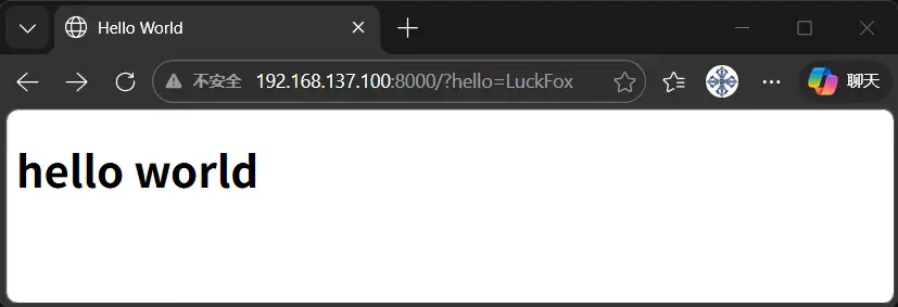 访问 web 服务的接口,传入 name 参数,http://192.168.137.100:8000/hello?name=LuckFox ,返回接口响应 json 数据: